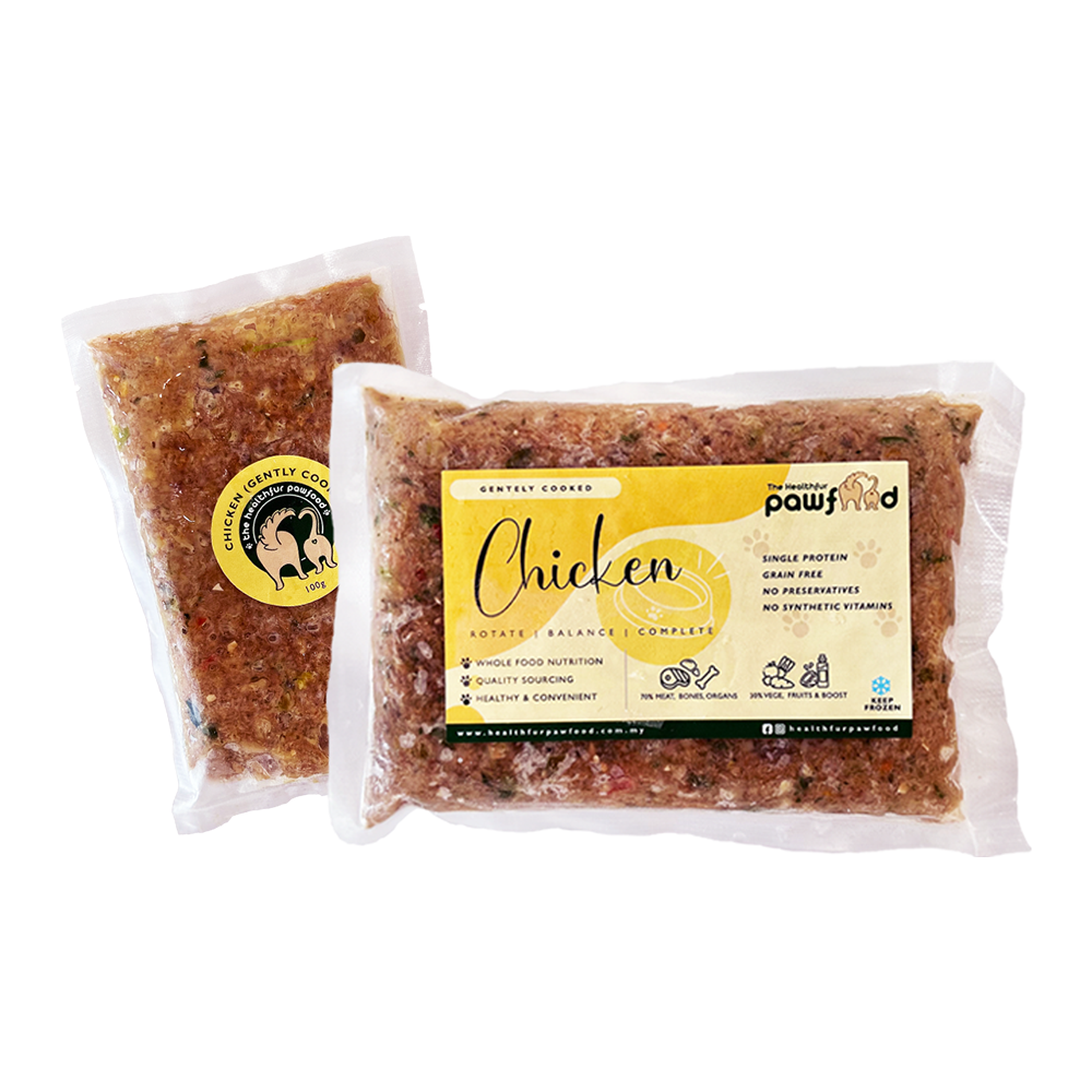 Cooked whole chicken with 10 different vegetables, fruits and superfood a healthy and beneficial addition to a pet's diet, especially dogs, as it's a good source of lean protein, essential amino acids, vitamins, and minerals, supporting muscle development, skin and coat health.