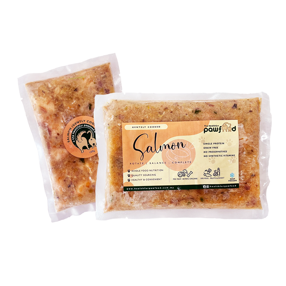 Cooked fresh salmon with 10 different vegetables, fruits and superfood offers numerous benefits for pets, including being a great source of omega-3 fatty acids, high-quality protein, and essential vitamins and minerals, all contributing to a healthy coat, skin, and overall well-being.